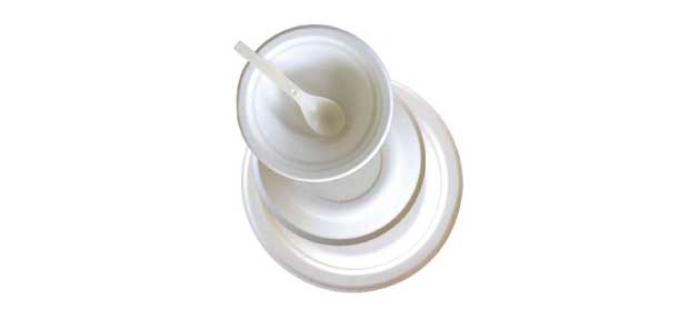 Cutlery, glasses and plates developed with the integration of Bio-Di compostable biopolymer.